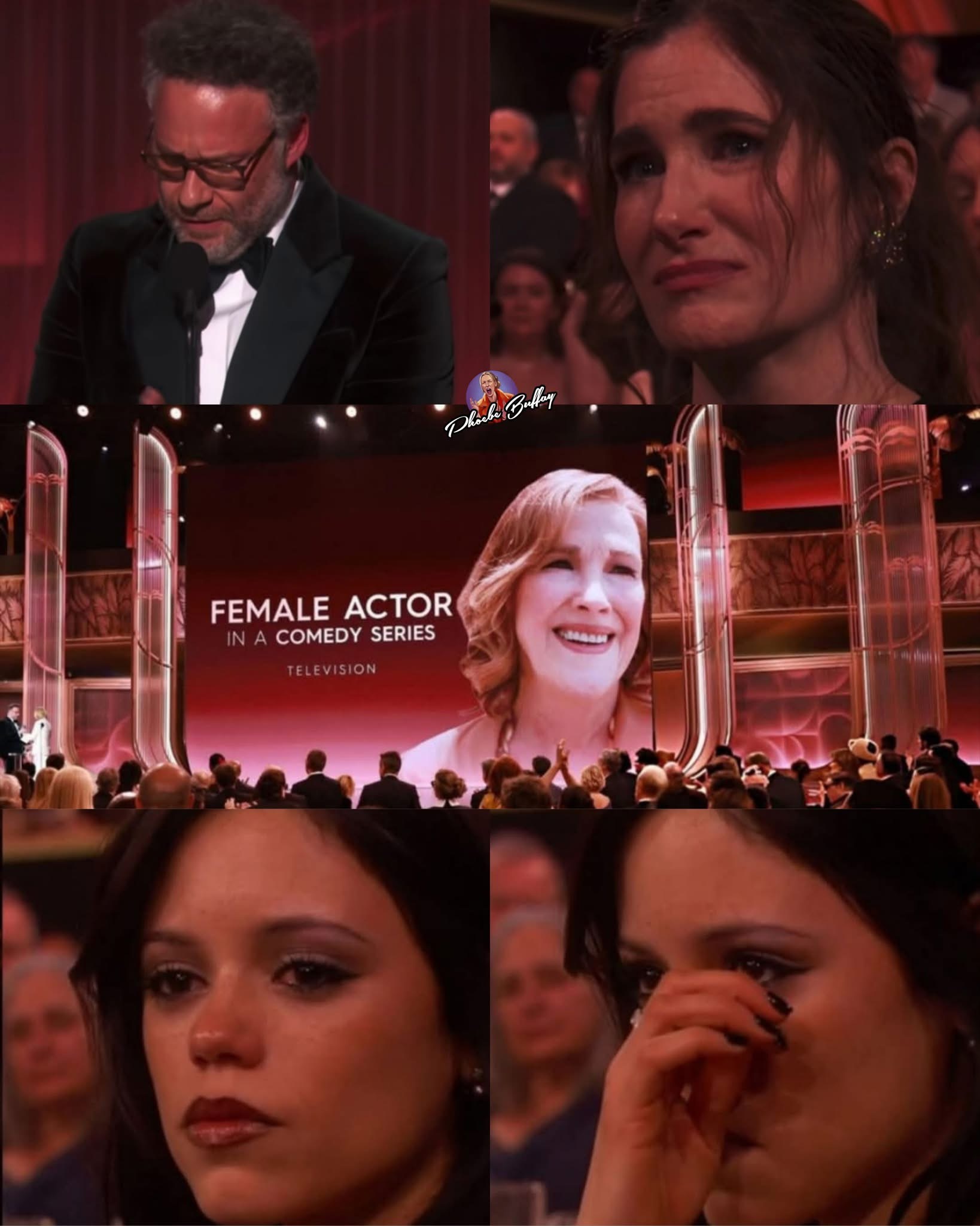 La ceremonia, conducida por tercera vez por Kristen Bell, estuvo llena de momentos emocionantes y memorables. En la categoría más esperada del cine, el premio al mejor elenco quedó en manos de Pecadores, que se consolidó como una de las grandes favoritas del año, mientras que Michael B. Jordan ganó el premio a mejor actor por su papel en la misma película. En televisión, Seth Rogen se llevó el galardón a mejor actor en serie de comedia por The Studio, y uno de los momentos más emotivos de la noche fue el homenaje póstumo a Catherine O’Hara, quien ganó el premio a mejor actriz de comedia en televisión por su papel en la misma serie, poco después de su fallecimiento a los 71 años. La ceremonia también contó con momentos divertidos y espontáneos, como el apasionado beso entre Kristen Bell y Jackie Tohn que no pasó desapercibido para los asistentes y los espectadores.