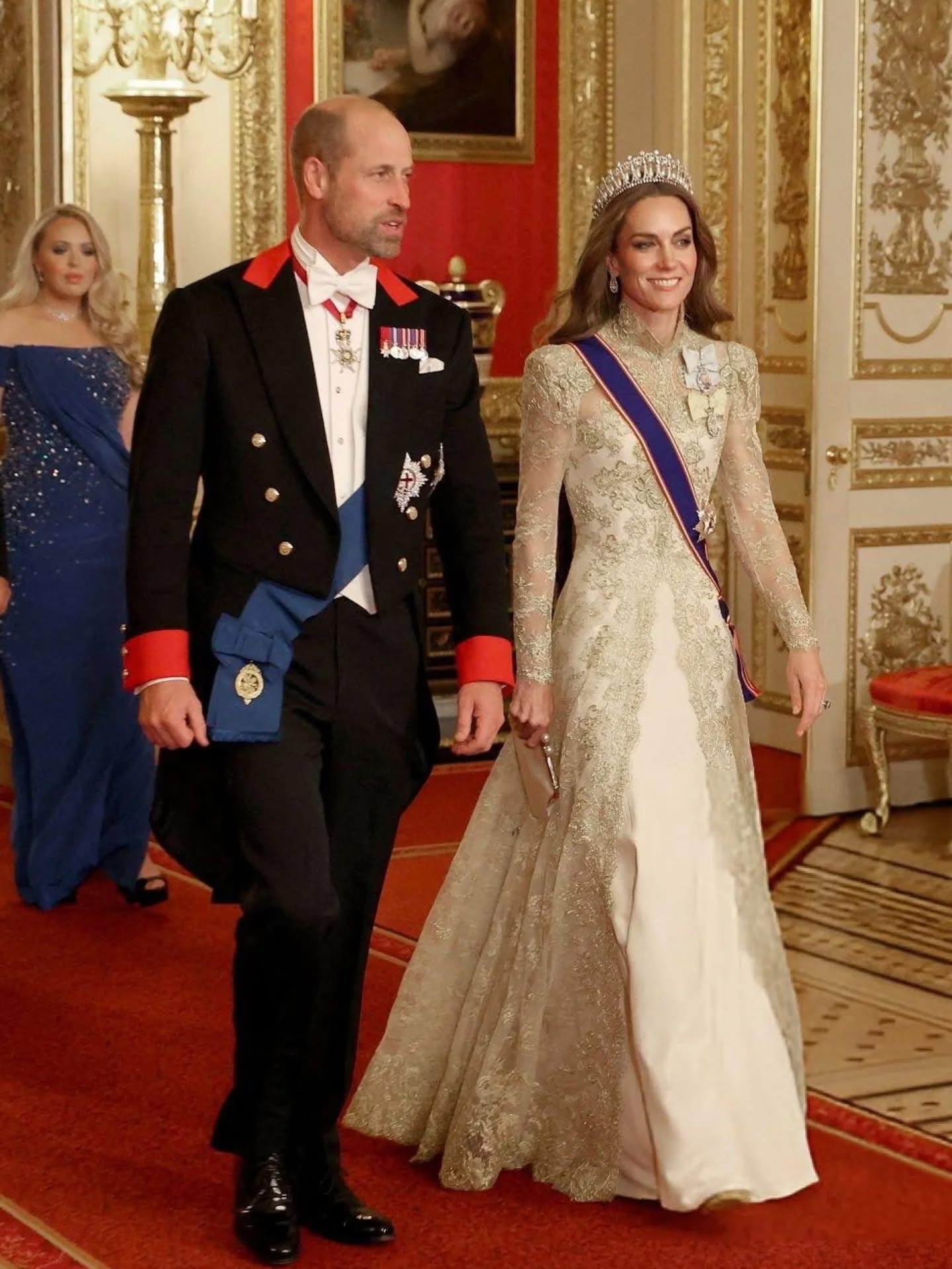 El conjunto de Kate Middleton fue un equilibrio perfecto entre modernidad y tradición, mostrando su respeto por la historia de la monarquía británica y su capacidad para adaptarse a los tiempos actuales. Su porte sereno y su sonrisa amable complementaron a la perfección su atuendo, dejando una impresión duradera de elegancia y distinción en una noche tan importante.