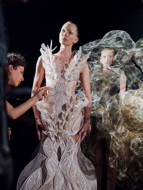 En conclusión, «Simpoiesis» es una colección que trasciende la simple exhibición de prendas de vestir. Es una declaración artística y una llamada a la acción, que nos invita a repensar nuestra relación con el mundo natural y a abrazar la colaboración como clave para un futuro sostenible. Iris Van Herpen, una vez más, se posiciona como una figura pionera en la industria de la moda, impulsando la innovación y la creatividad para crear un diálogo entre la naturaleza, la tecnología y la belleza.