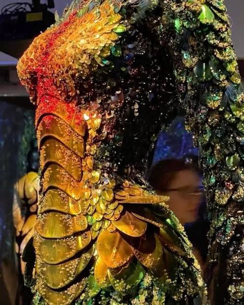 La Chimière, con sus formas orgánicas y su impactante silueta, es un ejemplo perfecto del estilo distintivo de Mugler. La combinación de materiales como seda, tul y encaje, trabajados con una precisión milimétrica, crea una ilusión de movimiento y fluidez. El vestido, con su impactante color dorado, evoca la magia y el misterio de una criatura mitológica, de ahí su nombre, «La Quimera». Más allá de su valor económico, La Chimière representa la capacidad de la alta costura para trascender las barreras del tiempo y convertirse en un símbolo perdurable de la creatividad humana.