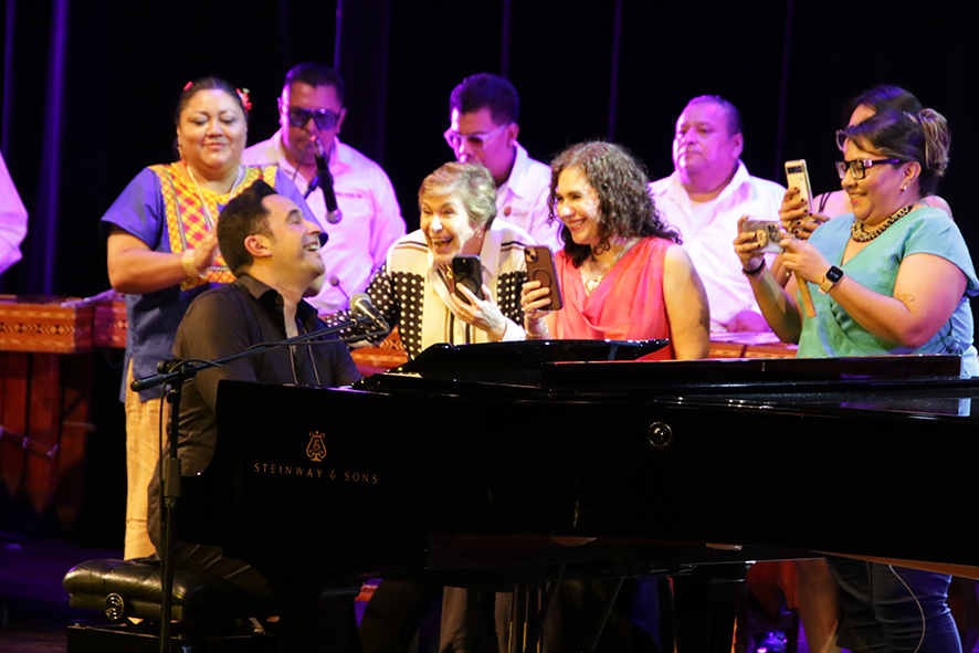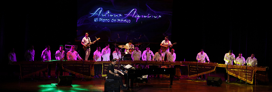 El Teatro de la Ciudad Emilio Rabasa fue testigo de una velada musical sin precedentes con la presentación de Las Marimbas a mi Piano, Volumen 2, del maestro Arturo Aquino, reconocido como El Piano de México, acompañado por el imponente Ensamble de Marimbas del Coneculta.