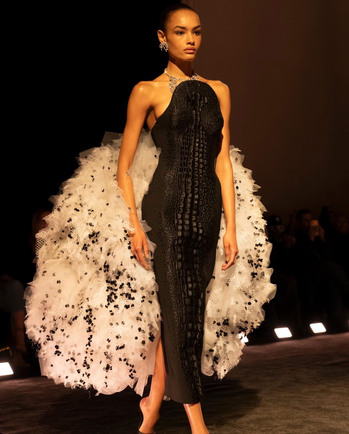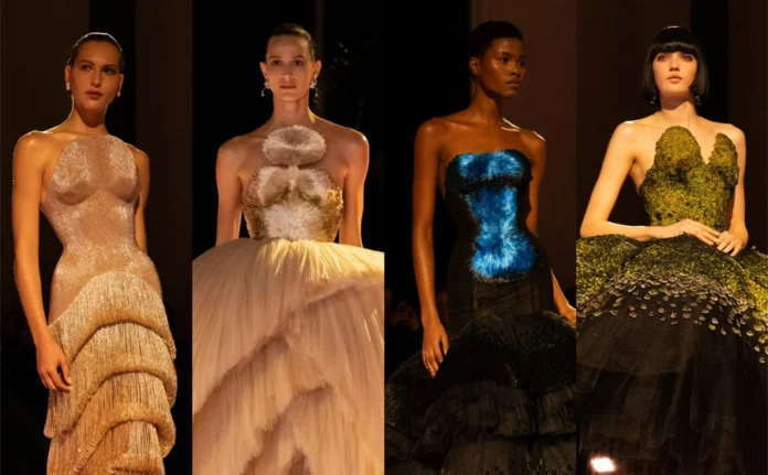 El día de hoy la maison Schiaparelli inauguró la temporada de alta costura primavera-verano en París con un desfile en el Petit Palais que dejó a la crítica y al público maravillados. Bajo la dirección creativa de Daniel Roseberry, la colección titulada «The Agony and the Ecstasy» tomó como inspiración una visita del diseñador a la Capilla Sixtina en Roma, aunque su interpretación no fue literal, sino un despliegue de imaginación que fusionó el legado surrealista de Elsa Schiaparelli con una visión contemporánea de la alta costura. El escenario contó con gigantescos ventanales oscurecidos y una pasarela alfombrada de negro, que sirvió de lienzo para las creaciones que desfilaron con una presencia teatral y escultórica.