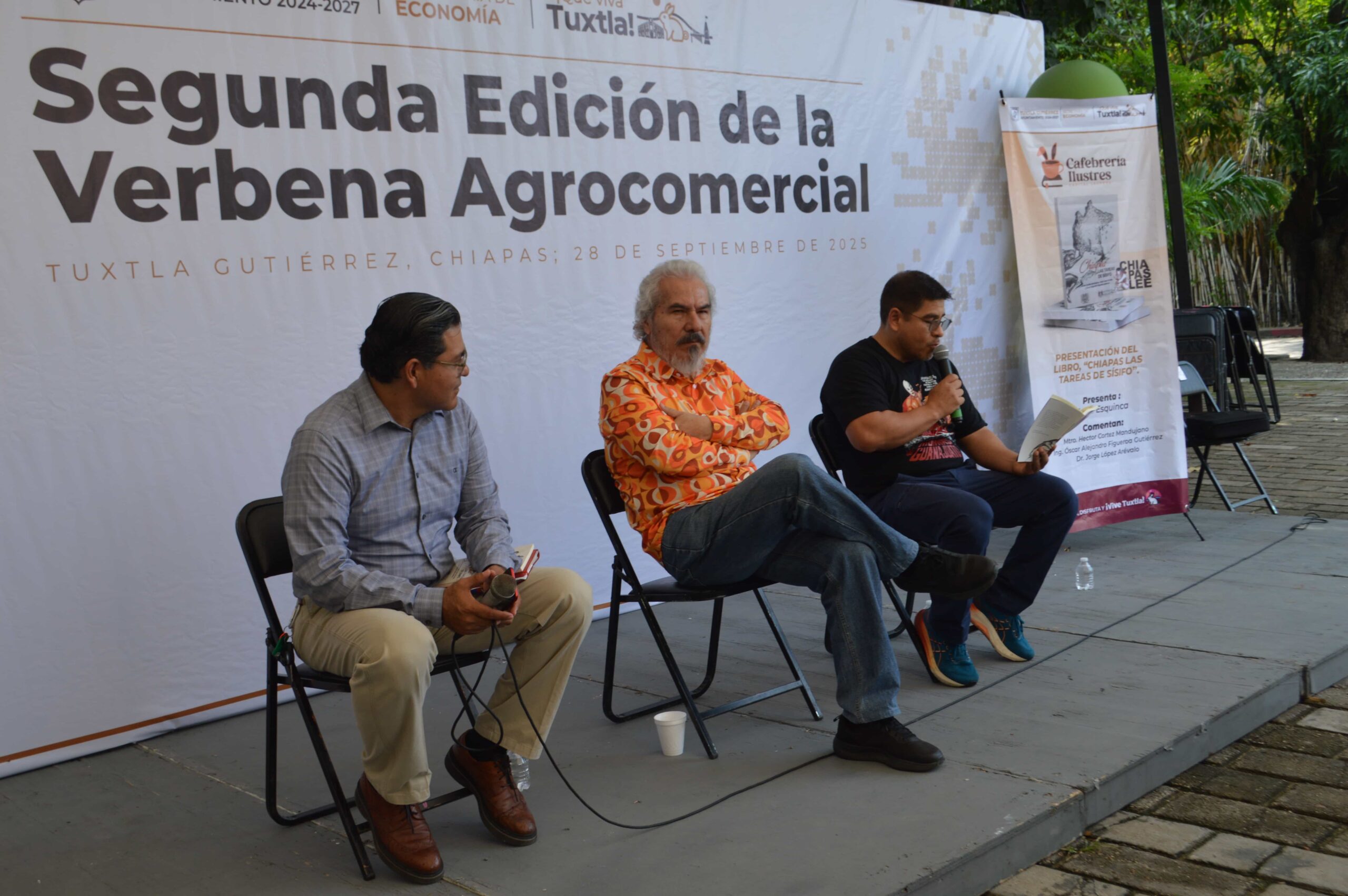 En el marco de la verbena, la cultura también tuvo un lugar especial: los asistentes disfrutaron de la presentación del libro “Chiapas: Las Tareas de Sísifo”, obra de tres grandes plumas chiapanecas: Héctor Cortés Mandujano, Jorge Alberto López Arévalo y Óscar Alejandro Figueroa Gutiérrez.